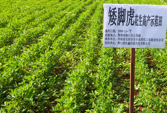 (1)施肥:苗期對氮、磷等營養(yǎng)元素吸收不多,但是團棵期,由于植株生長明顯加快,而種子中帶來的營養(yǎng)已基本耗盡,根瘤尚未形成。因此,苗期適當增施N和P能促進根瘤的發(fā)育,有利于根瘤菌固氮,顯著促進花芽分化數量,增加有效花數。建議在此時,結合花生需肥規(guī)律,葉面噴施硝酸鈣和磷酸二氮鉀,同時配合選擇使用復硝酚鈉、胺鮮酯DA-6、蕓苔素內酯、三十烷醇、矮壯素、縮節(jié)胺等一種或兩種調節(jié)劑,促根增葉,培育壯苗。