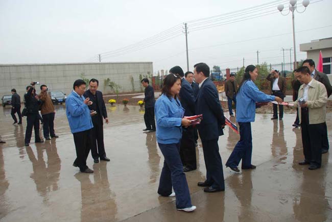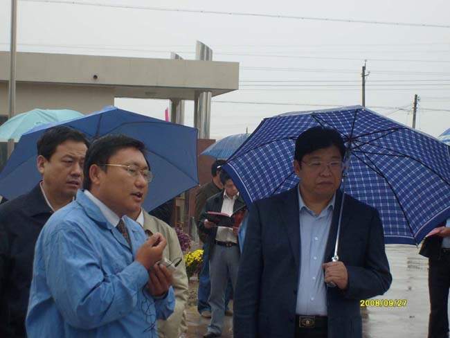 2008年9月27日上午,安陽市委書記張廣智、市長張笑東和市政協(xié)主席趙微等領導率領市有關部門一行人冒著霏霏細雨到我公司考察指導工作。
