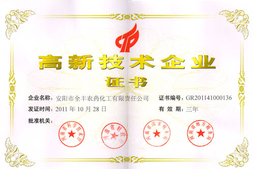 安陽全豐農(nóng)藥集團(tuán)被河南省科技廳評定為“河南省高新技術(shù)企業(yè)”
