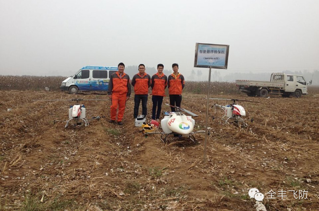 在棉花田里,自走式噴霧機、自走式旋耕機、大型棉花收采機、大型植保拖拉機及全豐航空植保農(nóng)用無人直升機齊上陣,實現(xiàn)對棉花從種到收的全程機械化作業(yè)。植保專家從作業(yè)速度、作業(yè)時間、作業(yè)效果比較分析,農(nóng)用無人機在病蟲害防治方面具有絕 對的優(yōu)勢,同時因遠(yuǎn)距離操作,避免了農(nóng)藥對人體的傷害,飛防專用藥劑的高濃度、低容量、簡包裝具備生態(tài)環(huán)保優(yōu)勢。同時,它的出現(xiàn)解決了棉花后期大型機械無法進(jìn)地作業(yè)或者進(jìn)地作業(yè)將傷害棉花產(chǎn)量的問題。