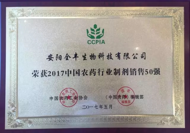 第四屆農(nóng)藥行業(yè)經(jīng)濟(jì)運行分析會暨農(nóng)藥行業(yè)排行榜發(fā)布會-安陽全豐榮獲制劑銷售50強