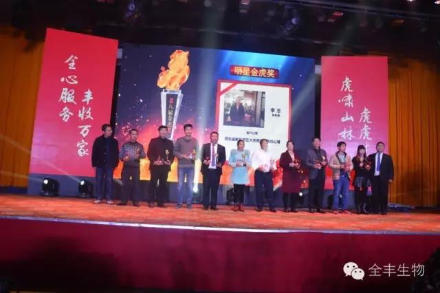 晚餐過后,激動人心的時刻到來了,一年一度的“金虎獎”頒獎盛典正式開始。向長期以來支持安陽全豐技術(shù)服務(wù)工作的單位和個人頒發(fā)“金虎獎”,并向業(yè)務(wù)突出的銷售精英頒發(fā)獎品。榮譽(yù)承載著辛勤的歲月,勇往直前是我們當(dāng)下的腳步。2017年我們來了,我們相信未來是屬于“全豐家人們”的未來,2017年“再創(chuàng)新高”。