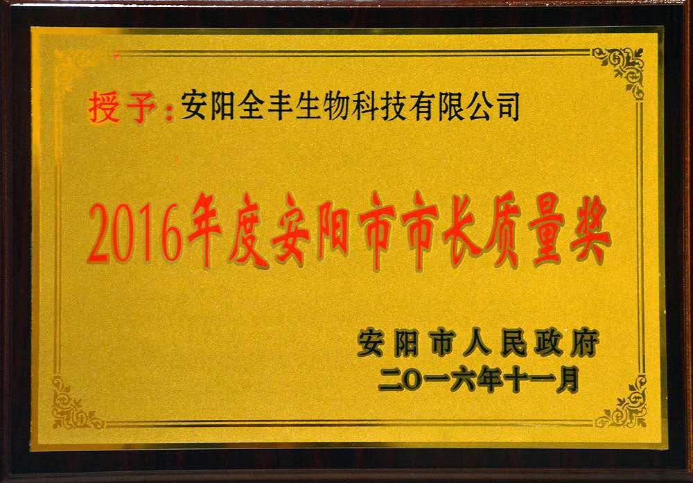 安陽全豐生物科技有限公司喜獲“安陽市市長質(zhì)量獎(jiǎng)”