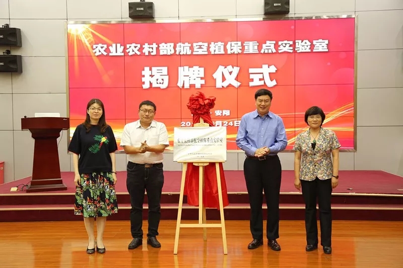 會(huì)議由華南農(nóng)業(yè)大學(xué)博士生導(dǎo)師蘭玉彬教授主持,實(shí)驗(yàn)室主任王志國致辭。之后全豐公司王志國董事長、華南農(nóng)業(yè)大學(xué)蘭玉彬教授、農(nóng)業(yè)農(nóng)村部南京農(nóng)業(yè)機(jī)械化研究所薛新宇研究員和安陽工學(xué)院張玲副校長代表四家共建單位共同為農(nóng)業(yè)農(nóng)村部航空植保重點(diǎn)實(shí)驗(yàn)室揭牌。