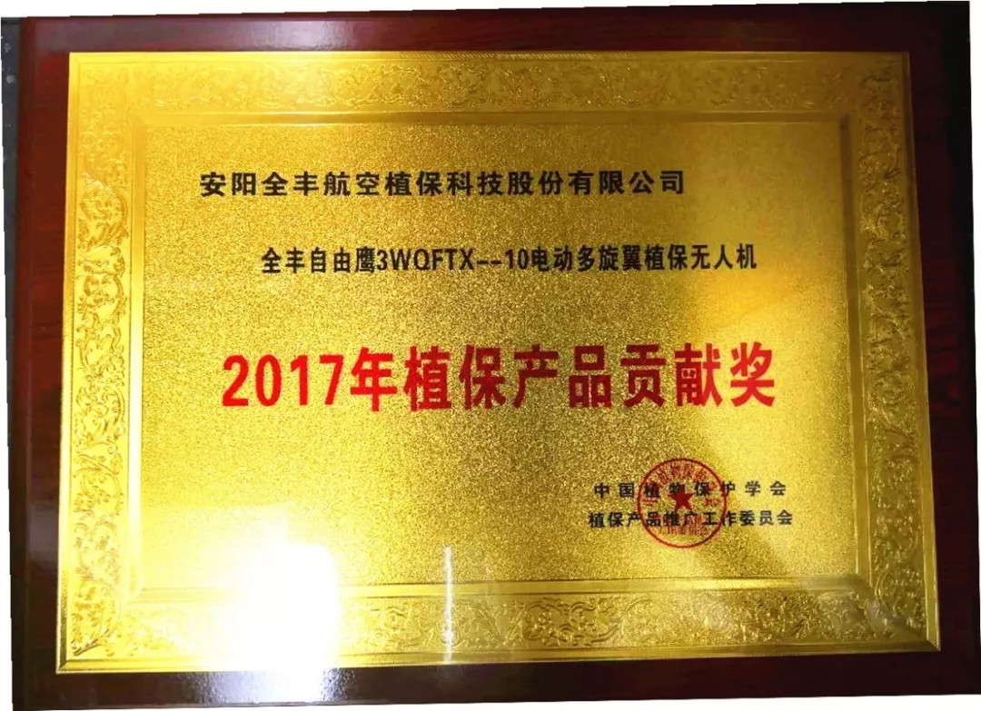 “植保產(chǎn)品貢獻(xiàn)獎”是由中國植保學(xué)會植保產(chǎn)品推廣委員會主辦,以推廣優(yōu)質(zhì)產(chǎn)品、表彰優(yōu)秀個人為目的,從2013年開始已經(jīng)連續(xù)成功主辦了5屆。在本屆評選活動中,安陽全豐航空兩款無人機上榜,這是對全豐航空促進農(nóng)業(yè)機械化進程、確保土壤健康和農(nóng)藥零增長做出貢獻(xiàn)的肯定。