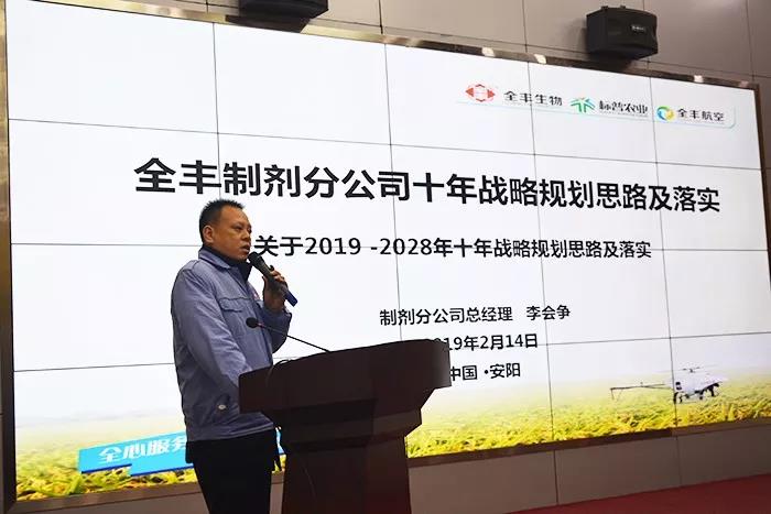 原藥公司王建國、制劑公司李會(huì)爭、航空植保張曉林、研發(fā)中心張朋飛等分別代表各自部門匯報(bào)了今后十年的發(fā)展規(guī)劃。