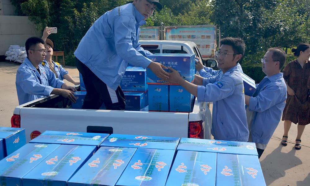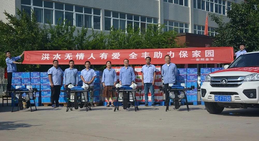 安陽(yáng)全豐在自身蒙受財(cái)產(chǎn)損失的情況下,不忘企業(yè)使命,勇于承擔(dān)社會(huì)責(zé)任,心系受災(zāi)地區(qū),開(kāi)展生產(chǎn)自救的同時(shí),公司董事長(zhǎng)、總經(jīng)理王志國(guó)第一時(shí)間帶領(lǐng)員工積極籌措物資,緊急行動(dòng)起來(lái),聯(lián)系湯陰縣、安陽(yáng)縣、北關(guān)區(qū)、文峰區(qū)當(dāng)?shù)丶t十字會(huì),向受災(zāi)嚴(yán)重地區(qū)捐贈(zèng)施必達(dá)、金處方、S誘抗素、“蚊蠅一夏凈”等物資將近50余萬(wàn)元,并免費(fèi)提供配套的無(wú)人機(jī)消殺服務(wù)。